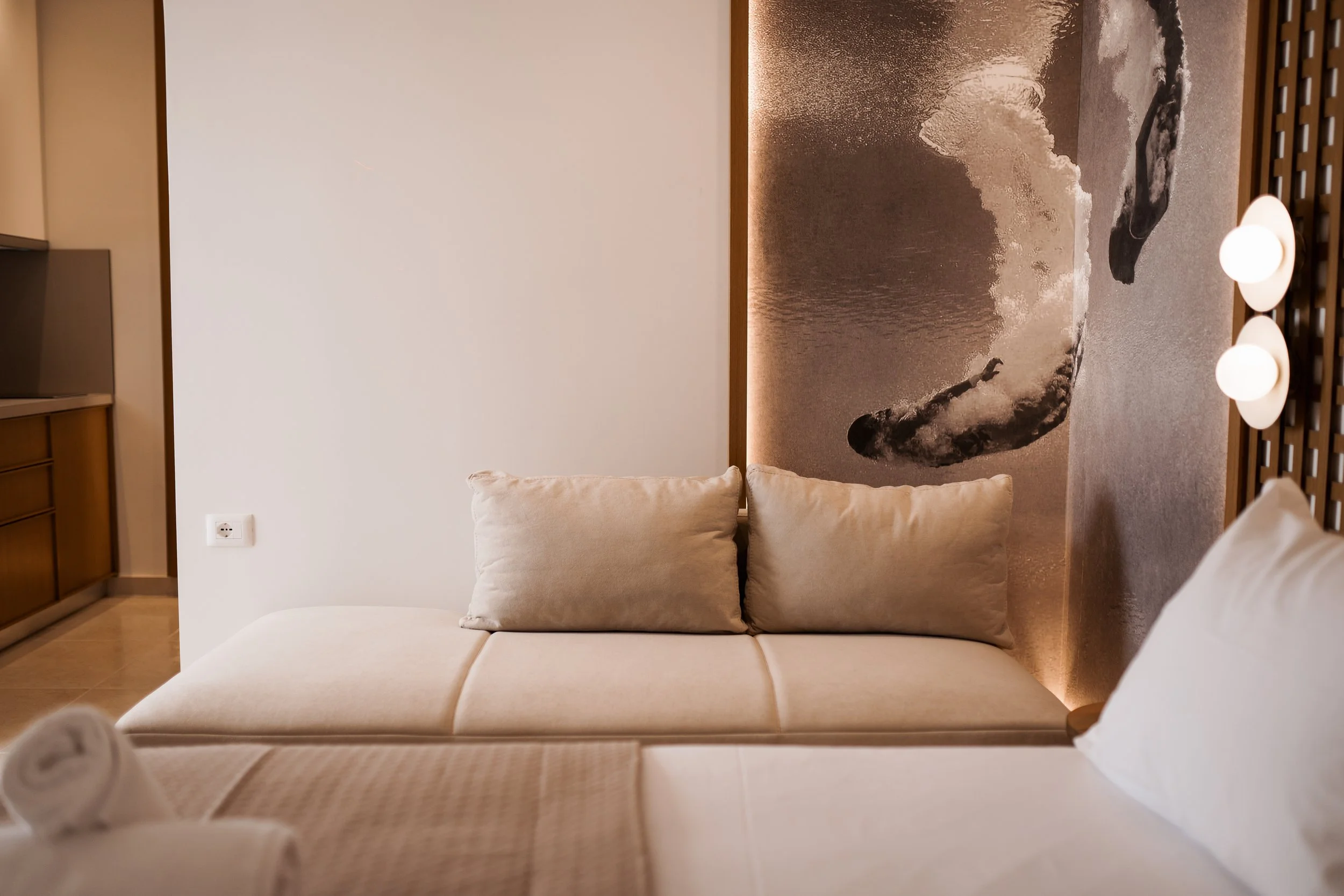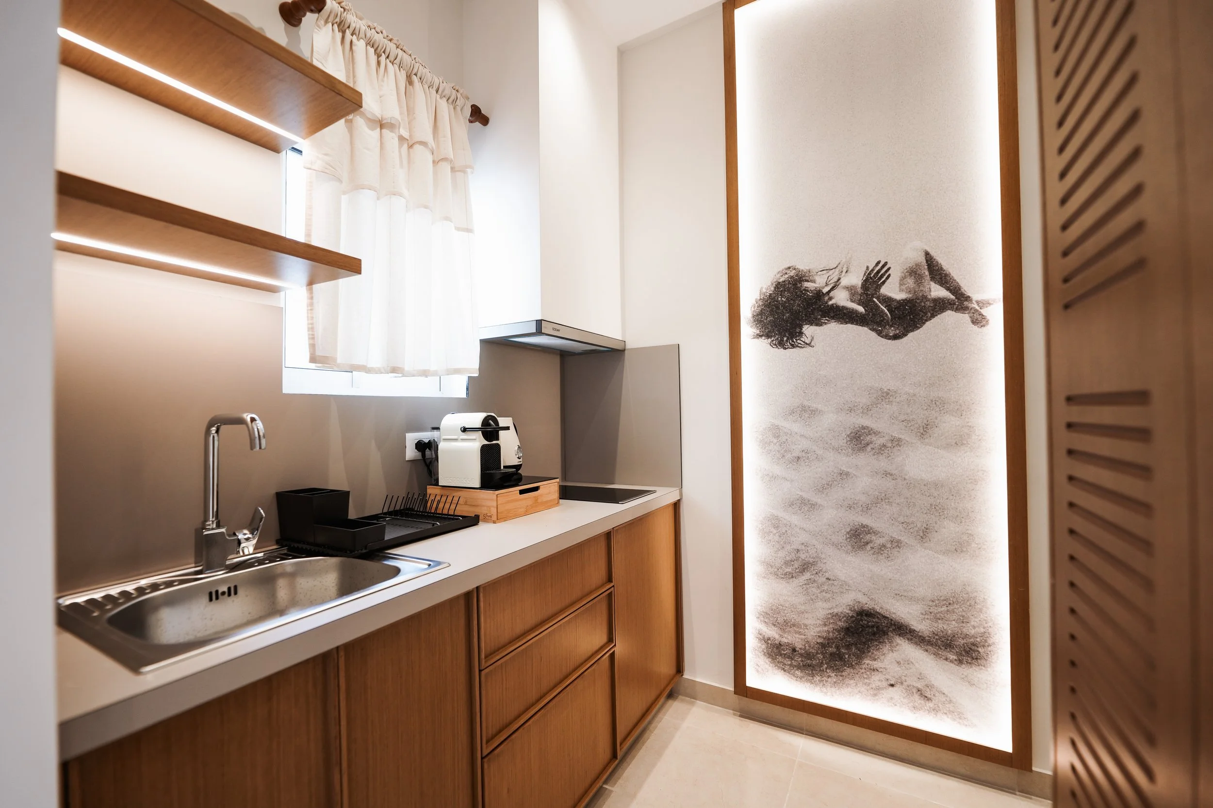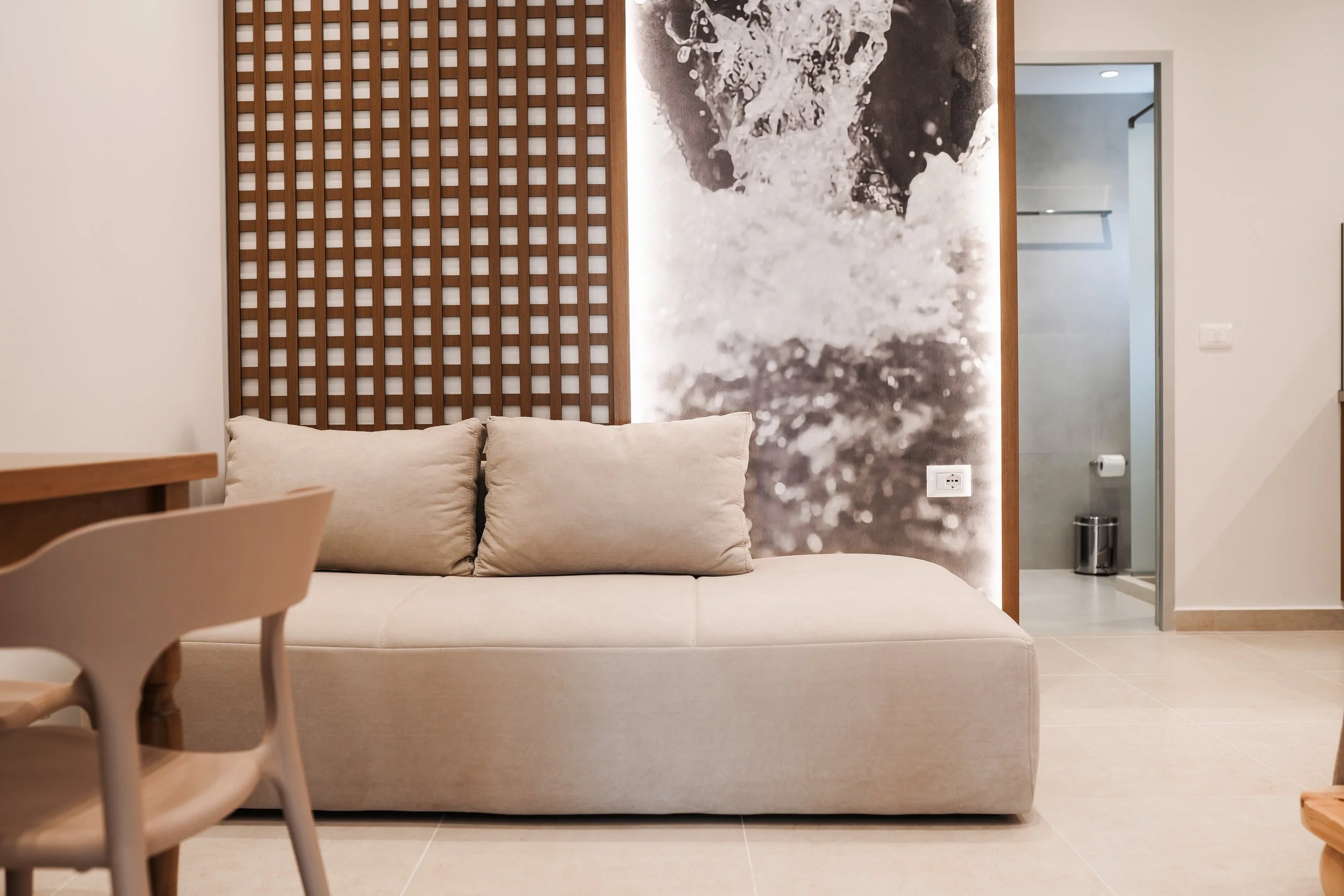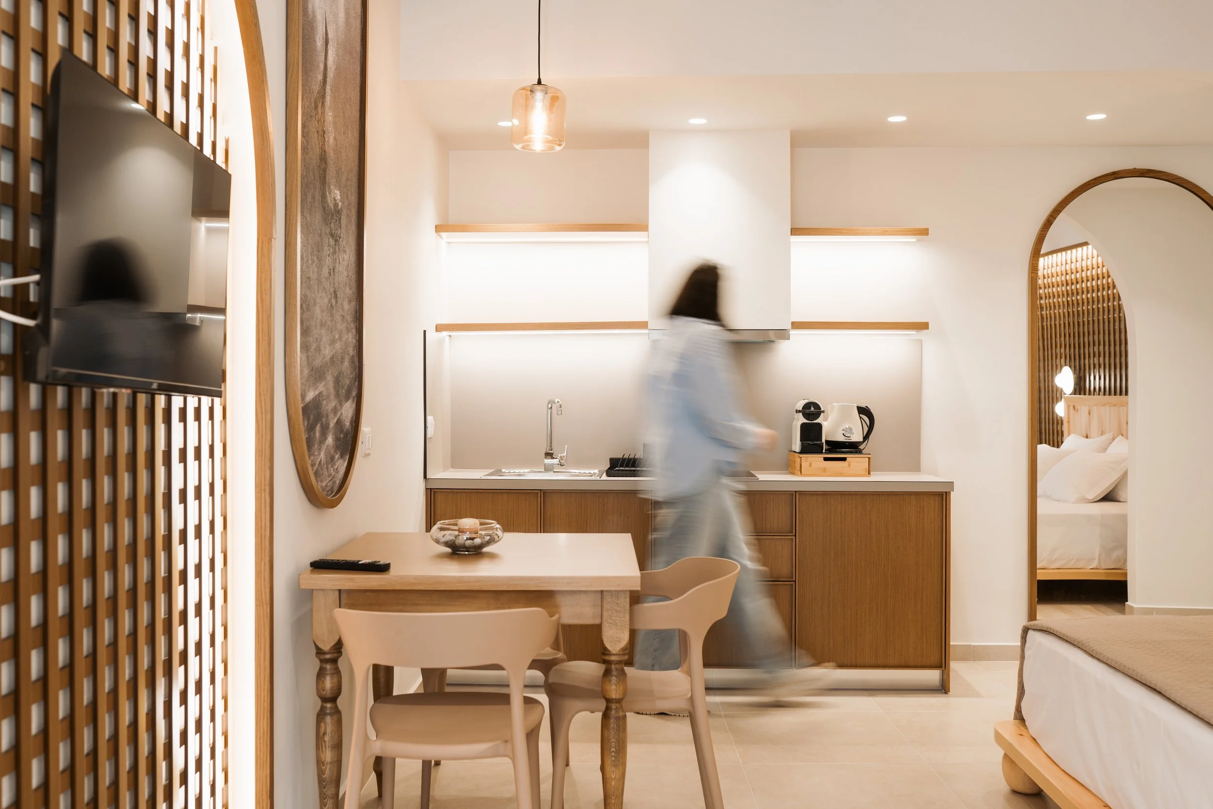 Stefaneli Studios embodies a refined approach to warm minimalism, where natural materials and a soft, neutral palette create a calming spatial experience. The interplay of light wood, tactile textiles, and subtle gridded elements adds rhythm and depth without visual noise. Soft lighting and carefully layered textures foster a sense of intimacy and balance, while the overall composition feels grounded and inviting. This space reflects a thoughtful dialogue between simplicity and warmth, ideal for contemporary, human-centered design.