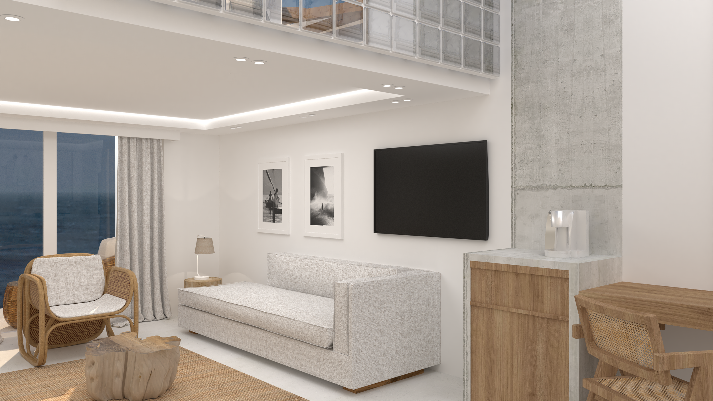 Carefully selected furnishings and soft fabrics enhance comfort while maintaining visual clarity, resulting in a serene space that feels both modern and timeless.